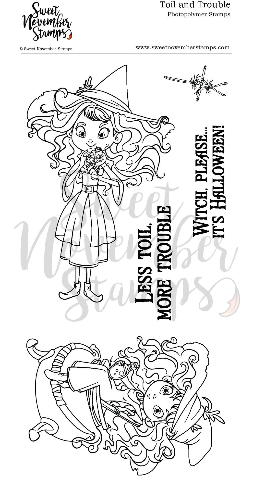 Perfect for Halloween cards, treat bag tags, scrapbook layouts, and spooky party invites, Toil and Trouble is a must-have for your witchy crafting collection.
